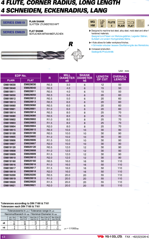 YG-1加長4刃圓鼻銑刀