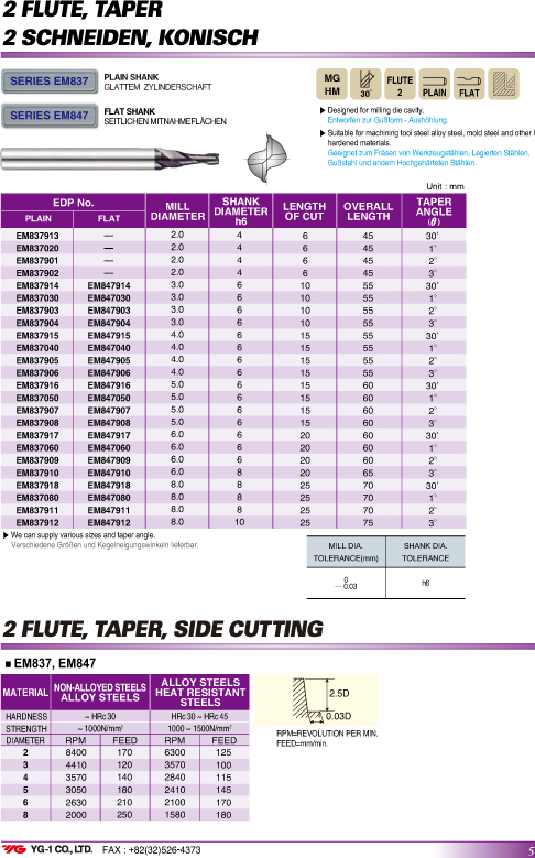 YG-1 2刃錐度