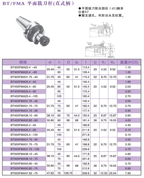 Name of commodity:191 BT/FMA平面銑刀桿(直式柄)